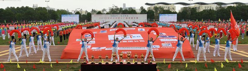 10月16日下午,由武漢市總工會舉辦的全市職工廣播體操大賽在江漢大學體育場舉行,集團公司代表隊獲得賽事一等獎,武漢市總工會黨組書記、常務副主席李丹芳為集團公司代表隊頒獎。