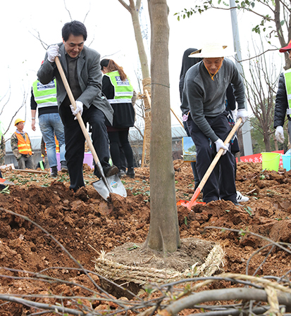 在植樹現(xiàn)場,公司領(lǐng)導(dǎo)吳文、江強(qiáng)生、余靖玲、朱斌、盛華、陳春保、王賢兵與大家一起揮鍬鏟土,提水澆灌。全體同志興致勃勃,干勁十足......