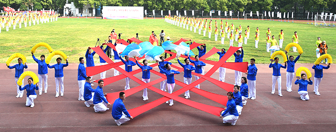 上午8時許,在雄壯的《運動員進行曲》伴奏下,6名護旗手組成的國旗方隊和19支代表隊方隊先后接受大會檢閱,運動員們步伐整齊、精神抖擻、口號嘹亮、動作新穎,充分展現(xiàn)了城投職工良好的精神風(fēng)貌,給大家留下了深刻印象……隨著公司董事長金國發(fā)宣布本次賽會開幕,600名職工帶來了新編創(chuàng)作《我和我的祖國》、《咱們工人有力量》大型團體操展示,伴隨著激昂的旋律,他們動作整齊劃一、協(xié)調(diào)舒展,充分展現(xiàn)了城投職工愛黨愛國愛企業(yè)、團結(jié)奮發(fā)的精神面貌。
