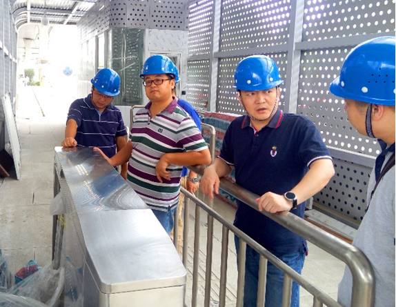 雄楚大街BRT示范站―理工大南站:公司領導詳細查看了現(xiàn)場施工情況,并囑咐施工人員,防汛期間一定要做好已安裝設備的保護工作,確保完成集團下達的通車任務。
