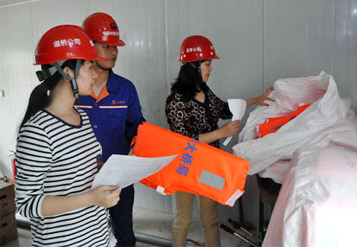 7月4日22:00,長江武漢水位突破警戒線,汛情緊急,楊泗港大橋兩岸沉井開始停止作業(yè),并抓緊撤離堤內(nèi)施工設(shè)施、辦公和生活物資,搶險分隊和設(shè)備集結(jié)待命。7月5日上午,公司“防汛排漬物資巡查隊”第一分隊姜燕、王萍、彭念、張明珠等人,深入到楊泗港大橋漢陽側(cè)防汛應(yīng)急物資露天堆場和室內(nèi)倉庫,現(xiàn)場清點防汛物資儲備情況,督促項目部足額落實防汛物資數(shù)量,確保防汛需要。