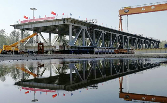 10月31日下午,由城投公司負(fù)責(zé)建設(shè)的楊泗港長江公路大橋工程完成鋼桁梁首輪節(jié)段預(yù)拼裝。首輪節(jié)段預(yù)拼裝專家評審會(huì)副總經(jīng)理同時(shí)在武船雙柳基地召開,市城投公司副總經(jīng)理林馳,道橋公司董事長魯有月,總工何志明,大橋設(shè)計(jì)院設(shè)計(jì)大師徐恭義,大橋局黃支金及質(zhì)檢站,設(shè)計(jì)院,鐵四院監(jiān)理,大橋局及武船集團(tuán)等單位相關(guān)負(fù)責(zé)人參加了會(huì)議。